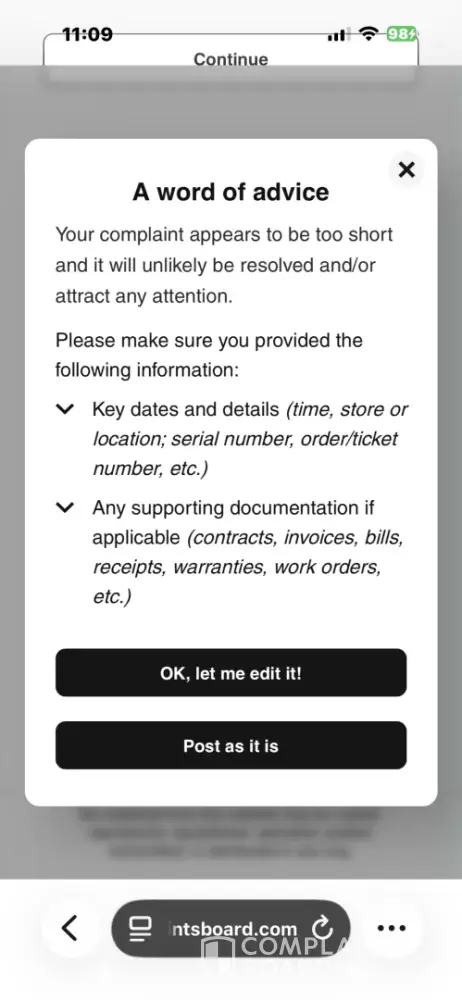 My complaint may go unnoticed/unresolved? This further solidifies that this isn’t a company I want to continue to do business with.