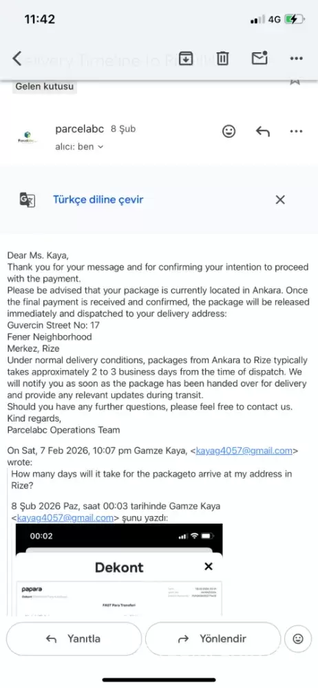 Later, I was informed that money was allegedly found inside the package. I was then told that this situation does not comply with Turkish law and that I need to pay an additional amount in order to receive my shipment.