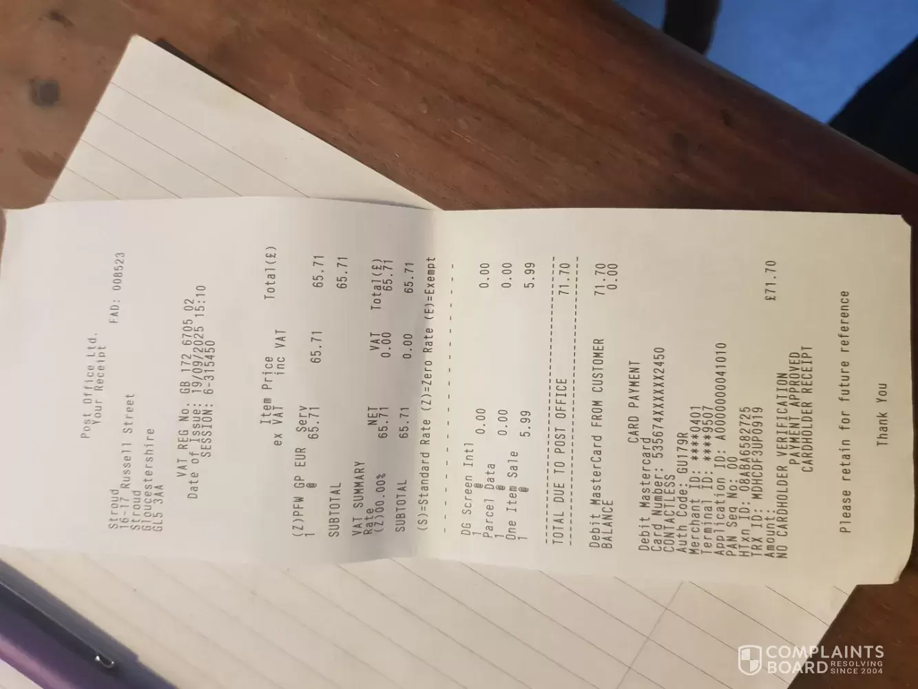 I sent a parcel to Geneva on 19.09.2025 paying £65.71 for a signed receipt. It was for my daughter's birthday and having had problems previously I wanted to take no chances.