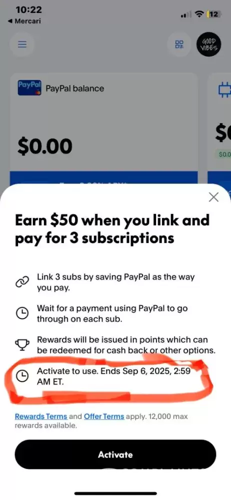 Desired outcome: I just want PayPal to give me my $50/5000 reward points for the Link and Pay for 3 Subscriptions offer