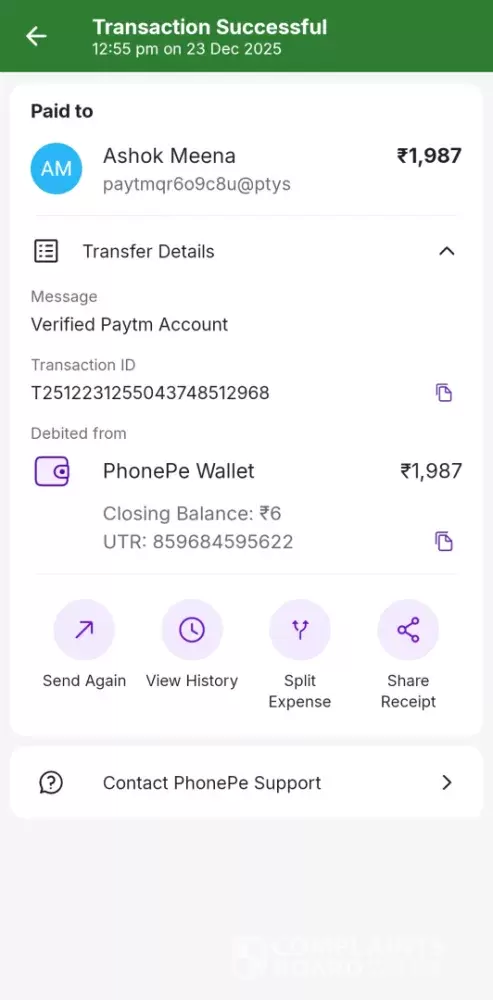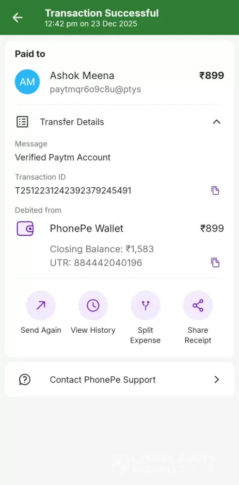I recently made a payment from my Paytm wallet that turned out to be fraudulent. The transaction details are as follows: - Amount: ₹3186 - Date and time: December 23, 2025 - Transaction ID: T2512231255043748512968 - Recipient's Paytm ID/QR: I request you to please investigate this transaction and, if possible, freeze the recipient's wallet to prevent...