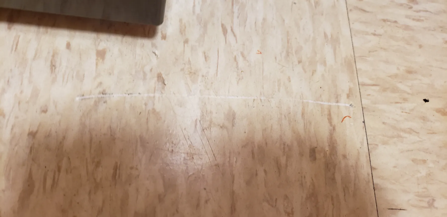damaged flooring and dented refrigerator