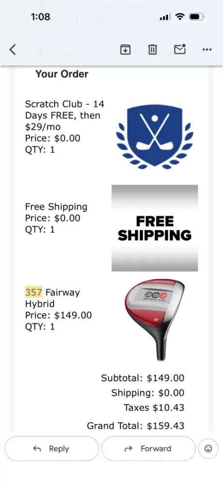 When you order a product from Performance Golf, they sneak in a line that says $0 due for a “Scratch Club” that then notes 14 days free and then $29 per month (see attached photo of invoice). When ordering a product (I ordered a golf club) you expect to pay for that and not to have other language that puts you into a club with monthly charges. Bad business practice!