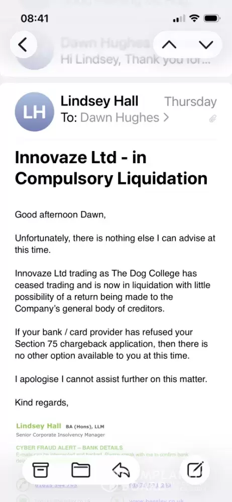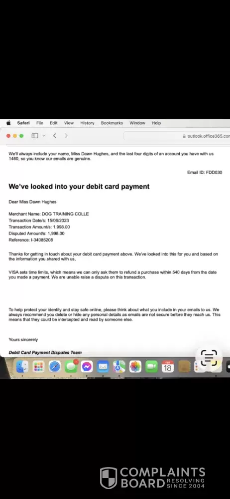 I paid £1998.00 by debit card in June 2023 and the company has gone into liquidation so I can not get the qualification I have paid for. I have already raised a complaint with you and you told me I couldn’t open a claim. Lots of students have been successful with their claims though and received their money back. The ombudsman has asked me to send an...