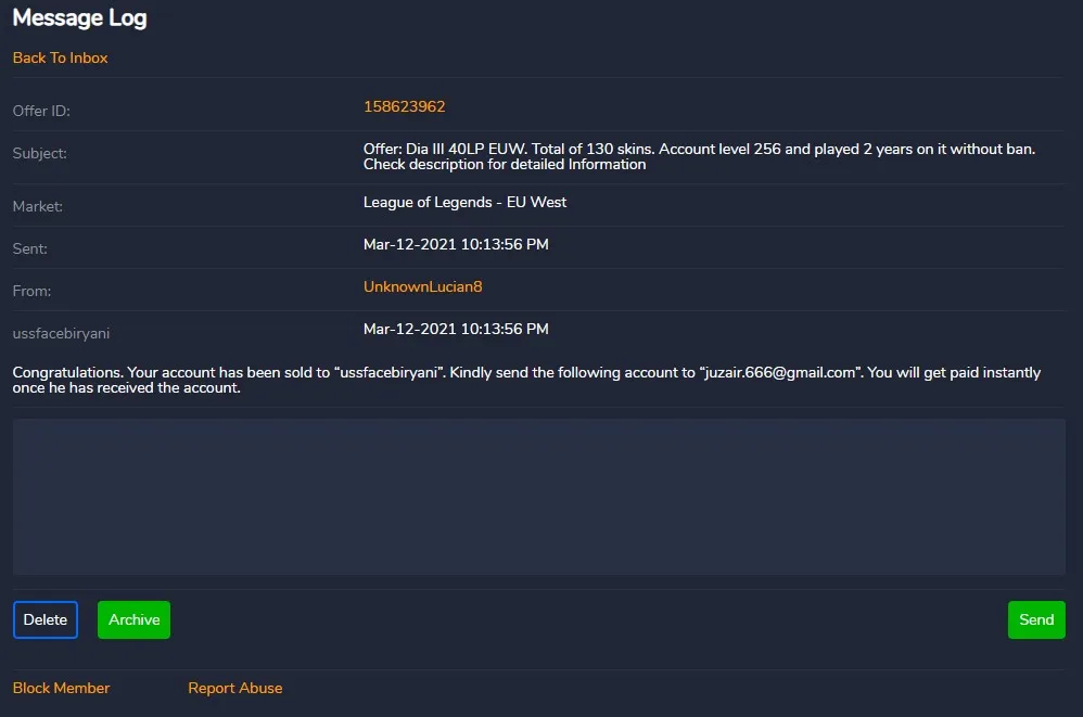 I received a meesage a week ago where I noticed that my League of Legends account has beed bought by someone and that I need to change my game account to the buyers email. As soon as I did that I haven't received my money (in the amount of 130$) and I lost the access to my League of Legends account. It's been a week and I haven't received my payment.