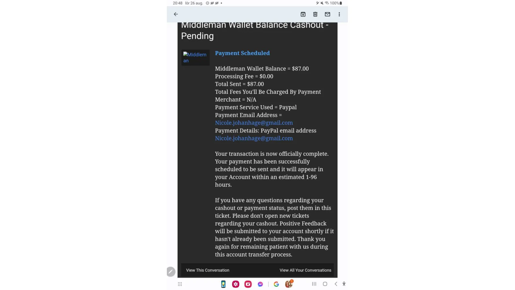 Sold account through middleman June 18. Had to write over and over again to get some respons from middleman. I was informed finally July 18 that I would receive my 87 dollars (account sold for 100$). I was informed my money would be deposited to my PayPal account within 95 hours. As of today I still haven't received any of my money and the page is down. I joined playerup so I wouldn't get scammed, but I feel I got scammed by middleman.