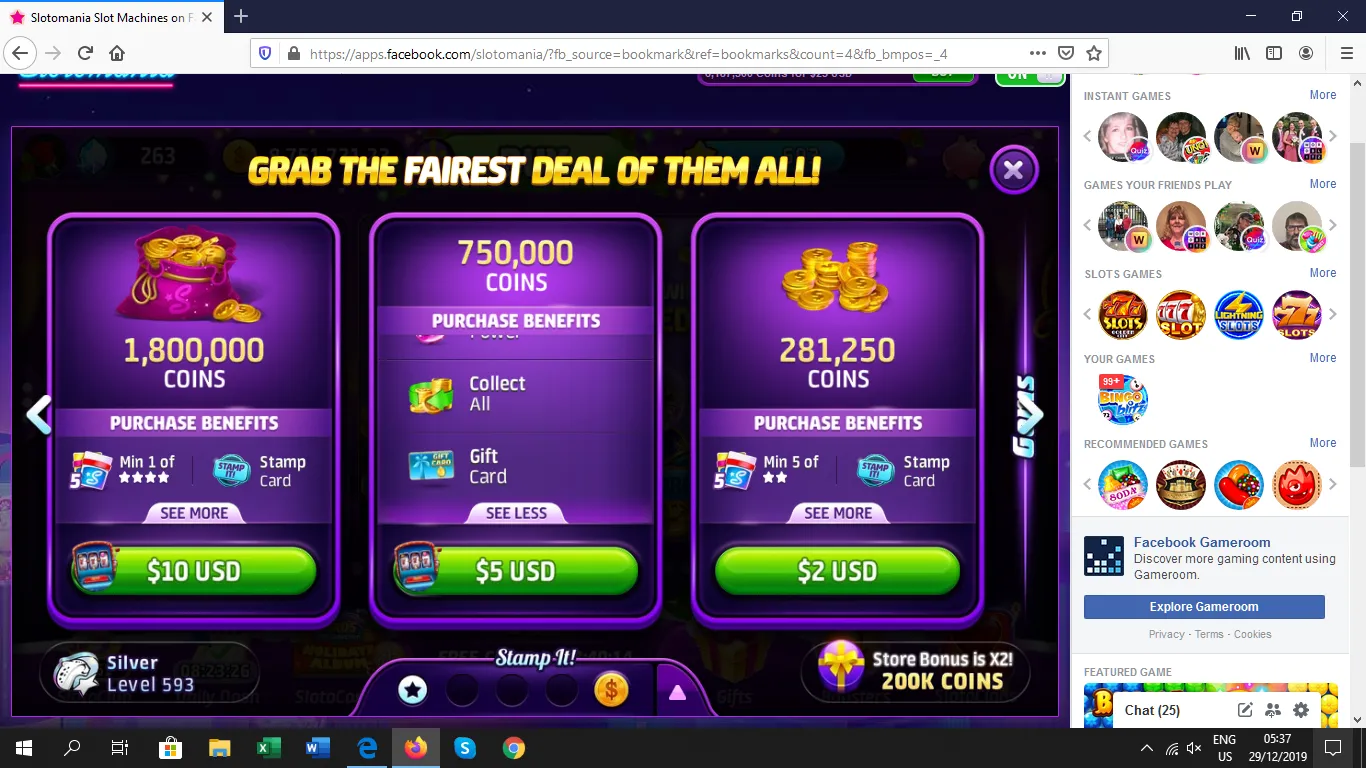 When I try to play through Gameroom it goes to the load page but will not finish loading. This has been going on for roughly a week. I try to play through my Iphone today (12/28/19) and it gave this message "The page you requested cannot be displayed right now. It may be temporarily unavailable, the link you clicked on may be broken or expired, or you may not have permission to veiw this page. It was the link on the games home page that i clicked.