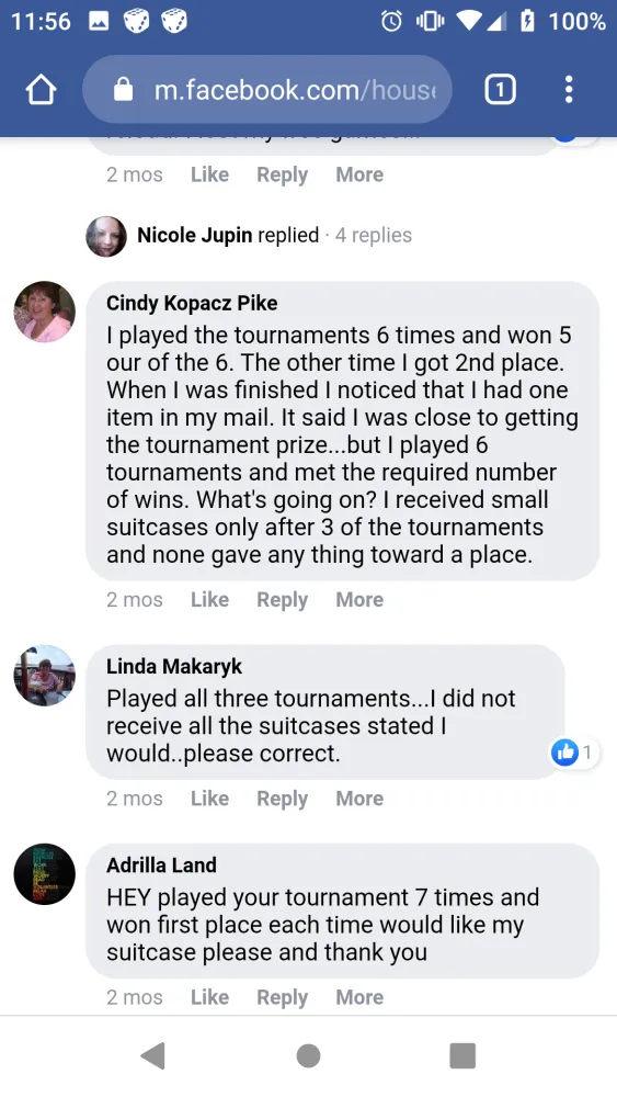 All 3 of playtika games seem to be discriminating against people that don't buy coins all the time, I've seen people winning trillions on the games that buy and I only buy once in a while and when I've bought coins I hardly ever win and the money is gone in 15 minutes, Caesars I haven't completed a legacy bonus set for a yr, I call it unfair gaming