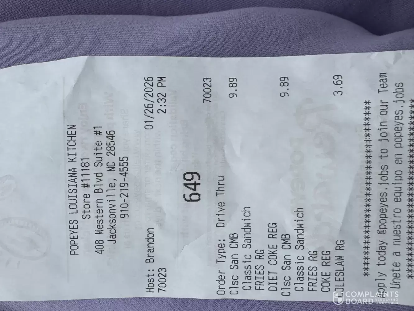 Store # 11181 We bought our lunch here and was shocked by the negative attitude of the female behind the intercom. Additionally, we were about to leave with no straws but I had a chance to ask for those before we drove away. When taking out our food items I realized there was no fork for the coleslaw. The girl who gave us the straws was the same one to hand us our drinks. She was letting us drive off without the straws. The receipt says it’s (Host) Brandon #70034 (he was pleasant at the window), but she was the female with the strawberry hair. Very abrasive and rude done, and terrible care for our order. Order time: 01/26/26 2:32pm ticket number 649