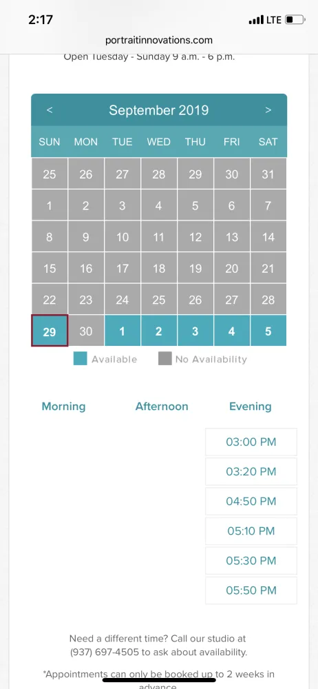 Appointment on Sunday Sep 29, at 3 o'clock. My family has a twelve year history of traveling a distance to get our pictures taken here and most likely my last visit here. A lot has changed on purchasing pictures. This time our photographer wasn't very nice, I understand you get large families that come in all talking but her actions/ body language were like...