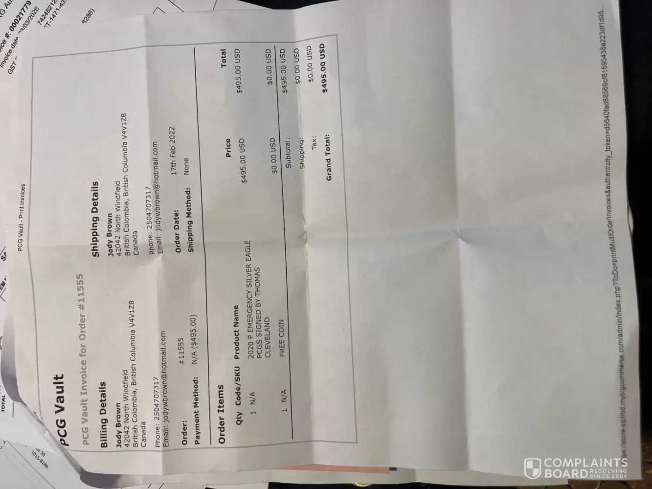 Overview of Professional Coin Galleries complaint handling