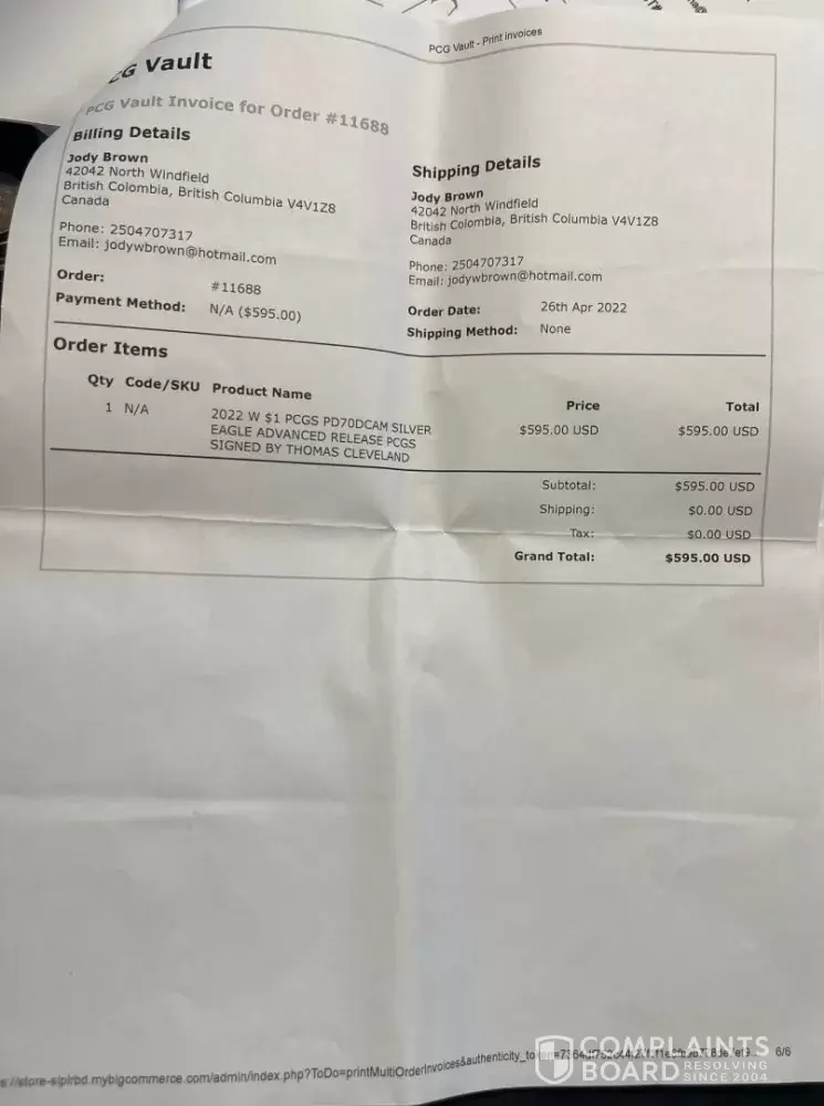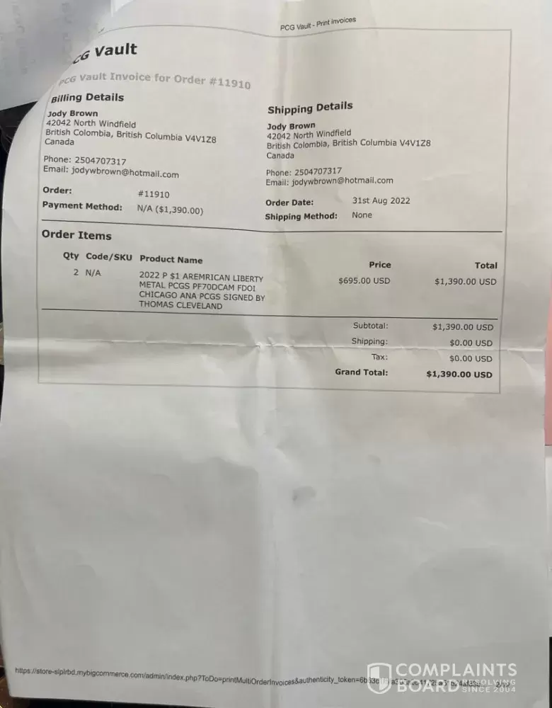 .13. I am very disappointed with the service of PCG. I believed in their written guarantee, but they proved to be unreliable. They took my money without delivering the coins and failed to credit my account even after several attempts. The owner had no reserves for buying back coins, which made me doubt the authenticity of the guarantee. Their response was unacceptable, and I suspect their business practices are unethical. The issue with the modified invoices further raised my suspicions. I do not recommend Professional Coin Galleries and caution potential buyers to avoid them at all costs.