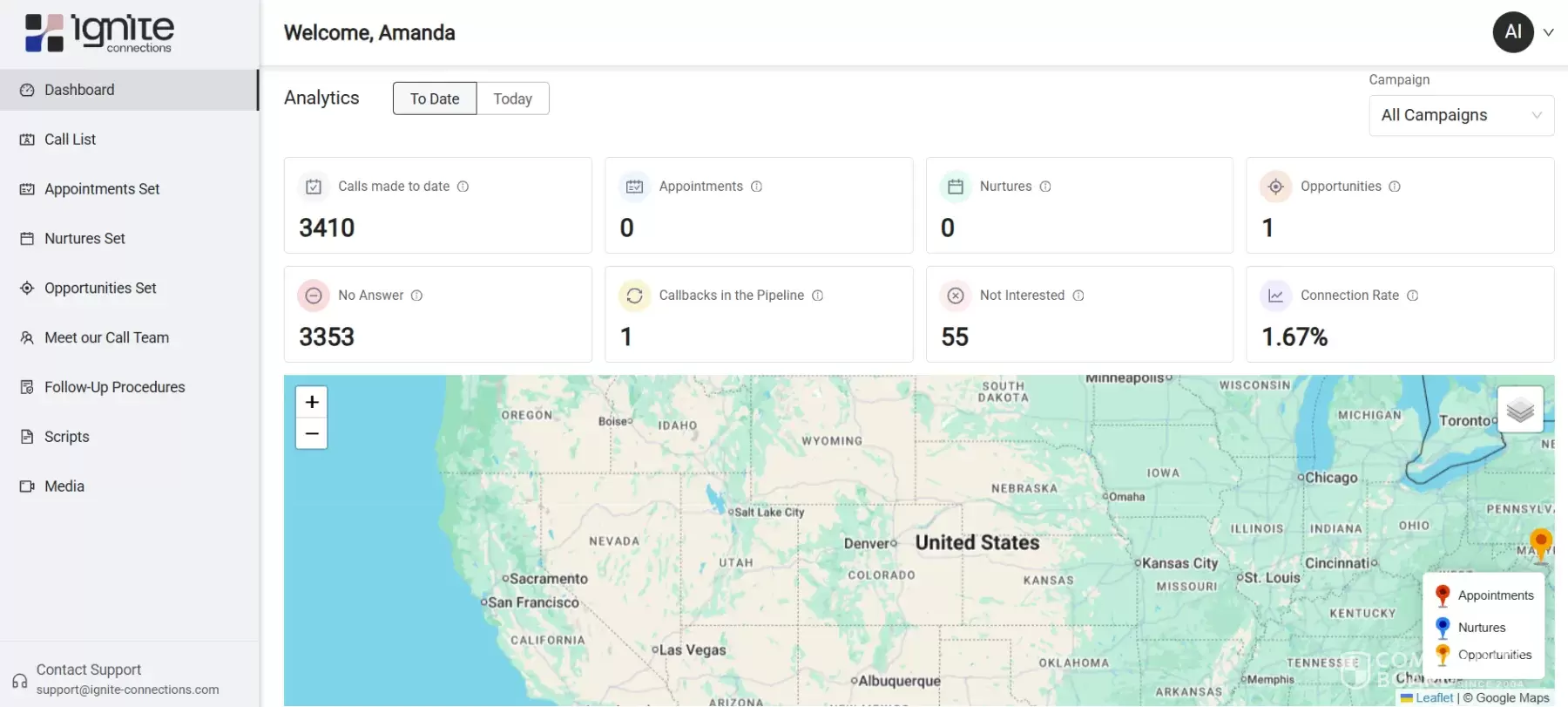 Over the full term, RQ delivered zero appointments and reported only 3,410 total calls, despite the contract terms indicating each contact would be called monthly (approximately 12,000 calls over six months). RQ never offered to extend or remedy the campaign, even after acknowledging low connection rates.