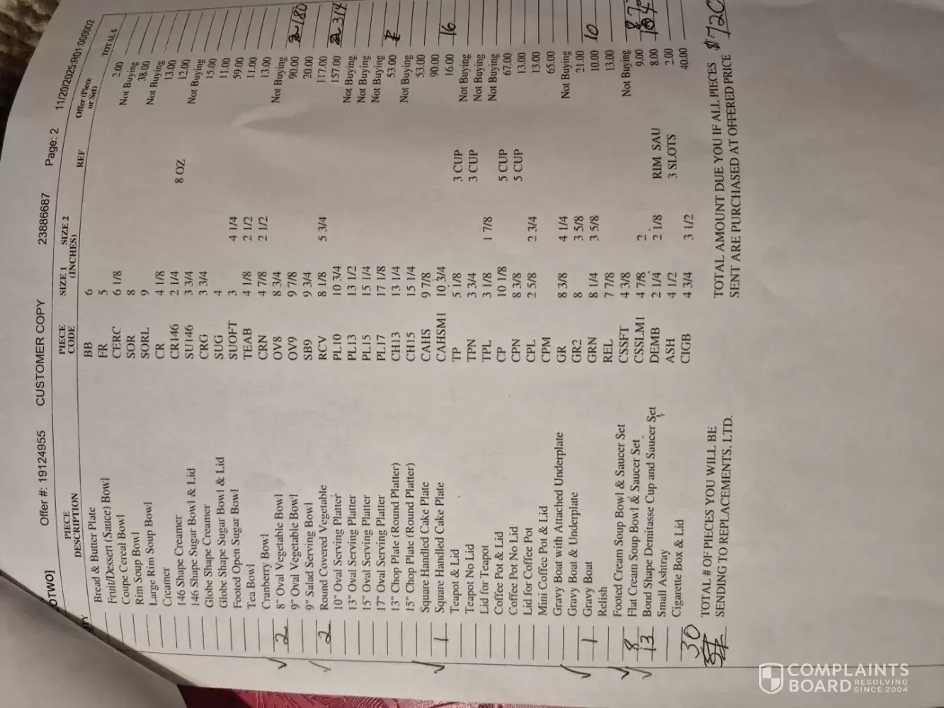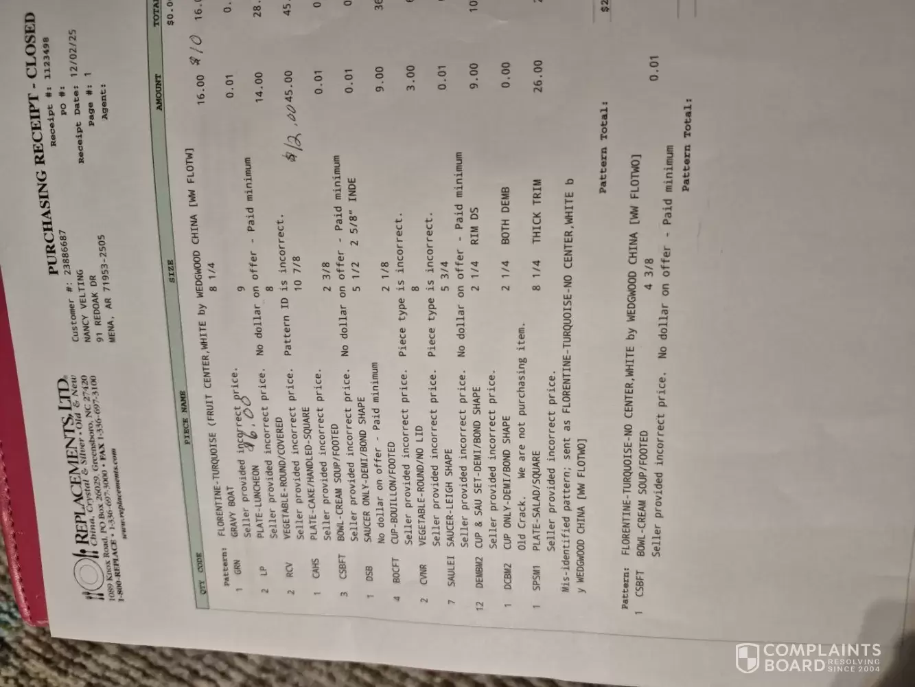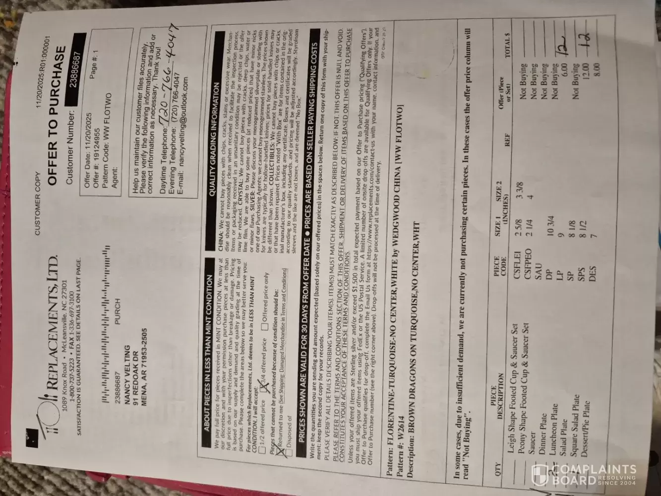 See attached receipts for china and silver plated tray and teapot. Excuse for not buying merchandise is incorrect price given when I used their pricing sheets sent to me for the brands sold. One of the pieces of china not bought was because it had a crack. No pictures were given. They paid .01 and .02 for expensive pieces of bone china. This place is like a...