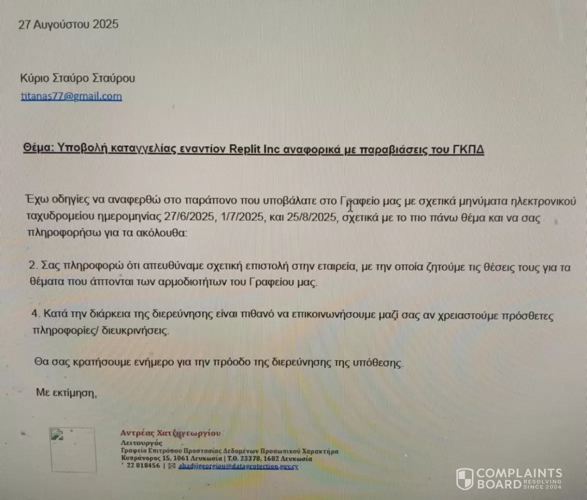 Yes — I have already opened a formal complaint under GDPR. Replit ignored both my requests and the data protection authority, so my case has now been escalated through the EU’s cross-border OSS mechanism.