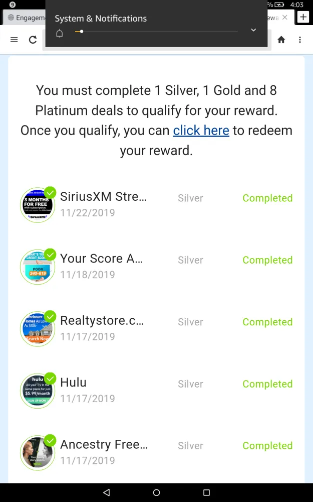 I have dont countless surveys, downloaded the apps, done the requirements and I AM LOSING money! This has to be a scam because I've lost so much money. I do the surveys look at the offers then it says claim reward i press to claim the deal. I spend my money thinking I will recieve the reward I AM TOLD i'll get after I do what I am suposed to and everytime I come back to the website it says i need to claim the deal again and when i click on it it sends me back to the subscription I just paid for but I am NOTBrecieving my rewards for holding up my end of the deal! On top of that it claims i need bronze and gold deals claimed but it only gives me the options for silver deals and ive done 3 of themnit wont let me have gold ones this is not right!