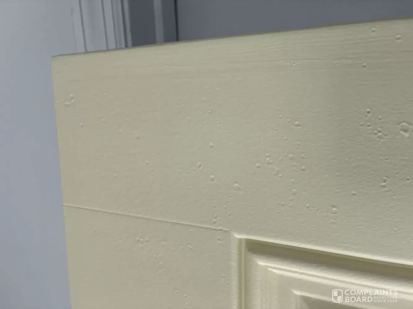 We responded to a mailed ad for a 25yr warrantied paint job with RhinoShield. It was for exterior painting of a 1350 sf cottage, 1 story and 8 ft high walls. The smooth talikng salesman showed us samples of the primer and paint coating. I am 75 yrs old and did not want to paint again. The cost was $28,000 while a standard paint job with good paint would have been less than $5,000. The salesman said their painters were specially trained for the spray job. They sent a subcontractor to do the job. They rushed through the job in 4 days instead of the estimated 5 days. the next day I stareted looking close4ly and there were areas with no primer, as I could see the old house color through the new paint coat. The primer was very sparce, not like the sample I was shown. There were a few isolated locations of locations that received no paint. The doors were supposed to receive Rhino paint All the doors were streaky, pocked marked and the paint came off unto the weatherstripping. I called the foreman Arturo and he admitted they do not use Rhino on doors, even though it was specified in the contract. Came back and repainted doors with more streaky and pock marked slopped on paint and hit the no paint spots. On closer exam they had sprayed paint on the storm door glass and spilled paint all over the decks. I called him to come back and tried to fix things but it was still bad. I called Adam at Rhino and sent him photos. Adam came back and brought Arturo back for 2 days of corrective work. Adam found other deficienies on Arturos work and instructed him to fix it. Still looks unacceptable and I doubt the longevity of the work and product. There is still paint spiils and the weatherstripping on doors have paint all over. In the gable picture you can see how little primer they put on on the old blue grey paint. I have to get someone to sand the doors and properly paint them.