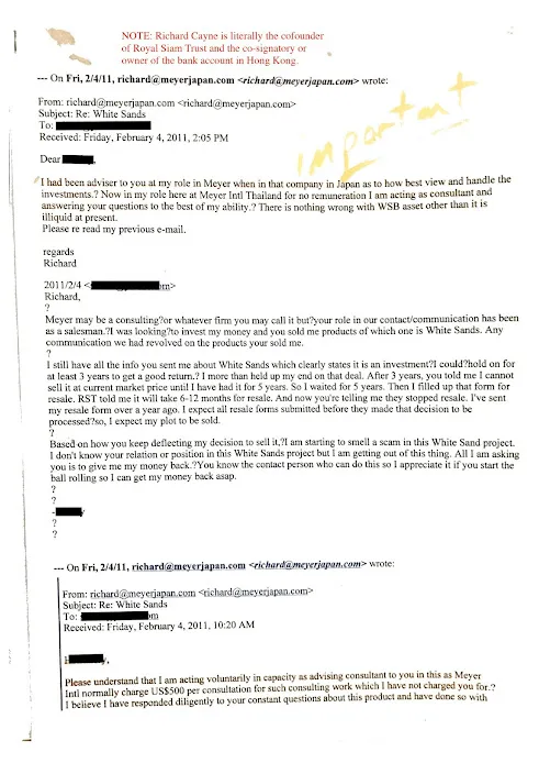 Now that it has been fully proven Richard Cayne has stolen US millions of our money while playing games and lying to us for many years on bogus claims in White Sands Beach he must start honouring the redemptions we filed years ago with his Royal Siam Trust that he denied. The Thai court did not honour our claims of course with his usual stall, blame and deflect bulls**t as we were told by another man plus a law firm for many years but Richard kept playing games and abusing us. We will be posting all of this including the evidence of the millions he stole and the lies to courts. Shame on you and your paid lawyers in Bangkok Richard.