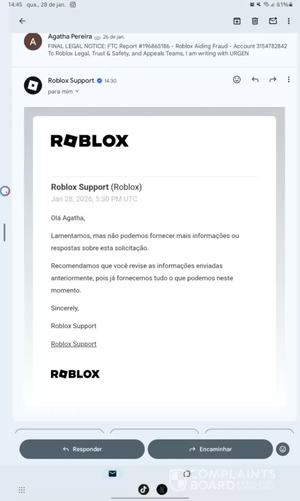 Fazem dois dias q eu tento entrar em contato com a roblox , mas eles n responderam ainda. Já atualizei os e-mail e nada.