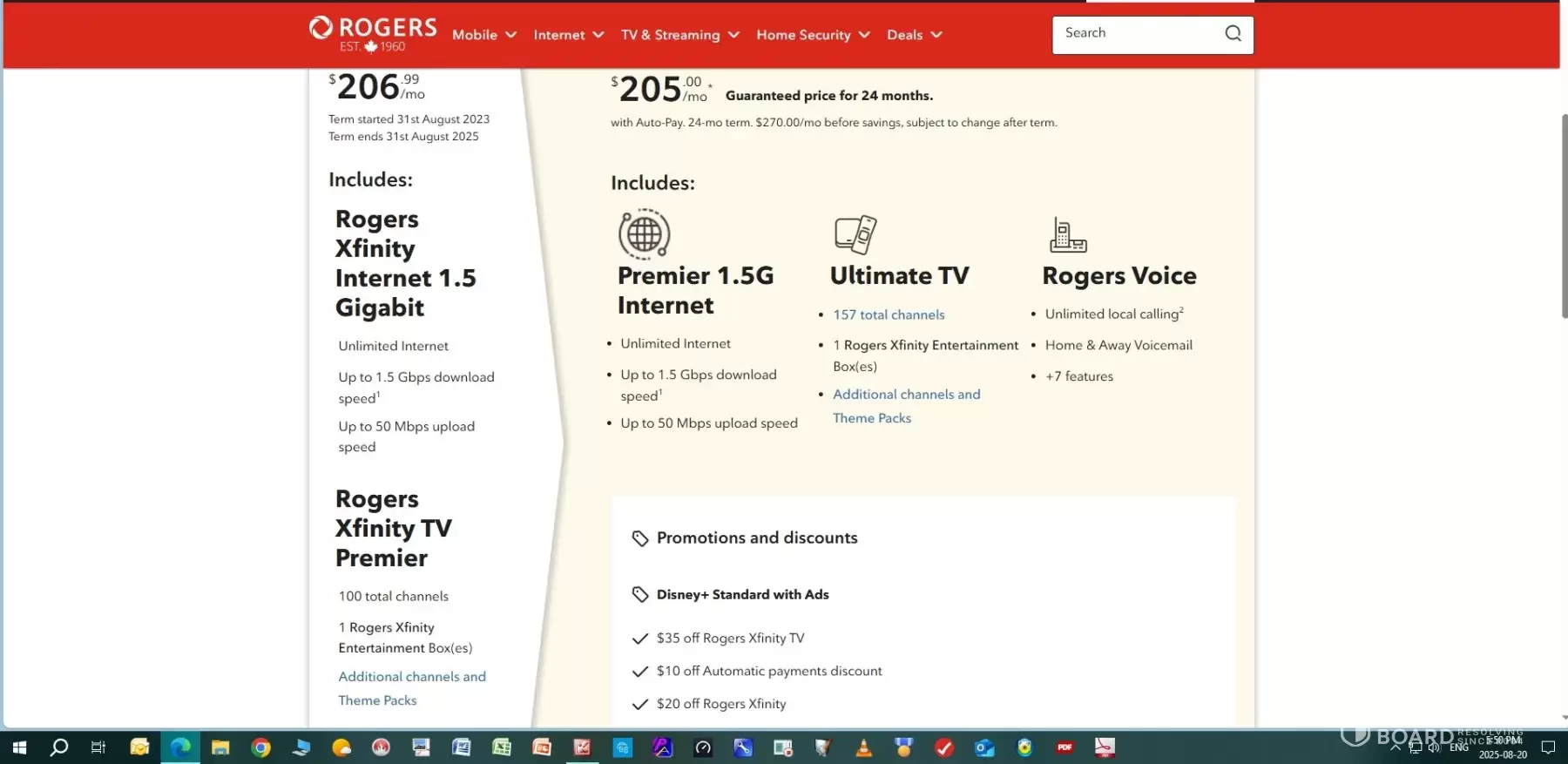 My 2 year offer expired August 31, 2025. Normally obtain new offer from Messenger as I am unable to talk on phone. No response from Messenger after 6 tries. Made complaint with office of the president asked not to call, guess what they called and left voicemail. Saw offers on My Rogers clicked on to see what came with offer, kept getting error say "Its not you its us" then screen refreshed Office of president sent me email as about offer and got some answers. I sent them screen shot of offer saying we would like this. Just received my September 2025 bill. Same as what I had before just alot more money. Not sure what to do as getting no answers from Rogers. Loyal customers seem to get passed along when new customers get more attention. Was happy with Rogers only been with them since they bought local cable company. I checked Bell not much better. We need more competition in Canada to stop the 2 main companies making billion dollar profits off of us.