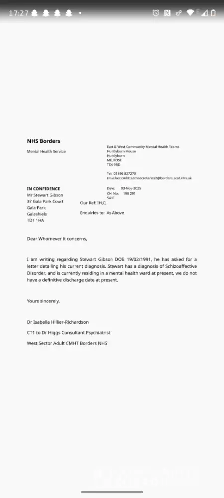 - I informed staff that I have schizoaffective disorder and that staff at [name of hospital/ward or community psychiatric team] would support any identity or verification steps; I requested reasonable adjustments such as a named contact for correspondence, acceptance of hospital paperwork, or extra time for verification.