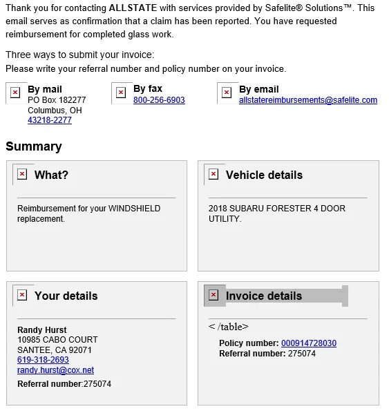 Read full complaintreimbursement of the windshield by subaru was not received by safelite autoglass