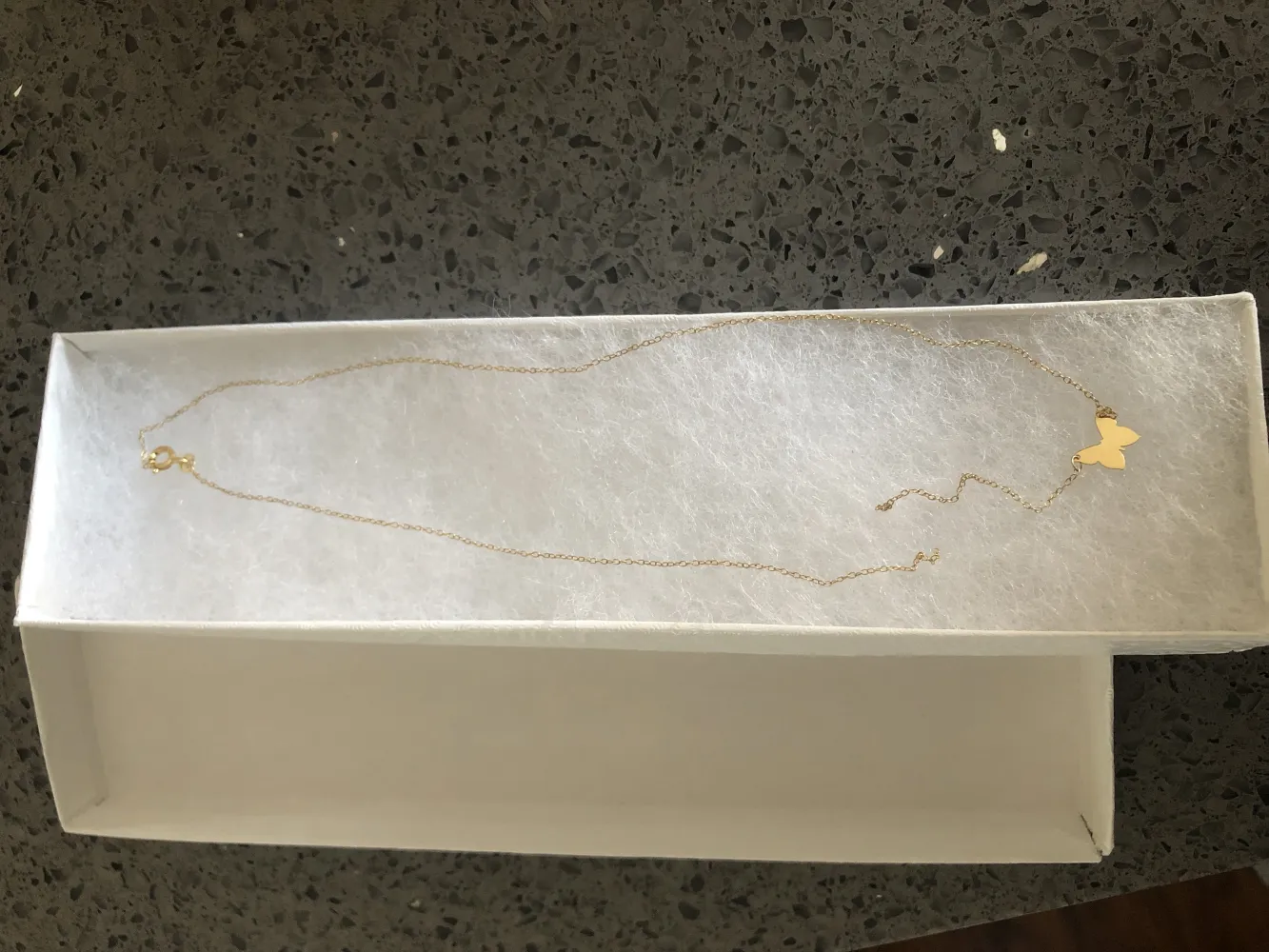 Read full complaint14 k gold. butterfly pendant necklace