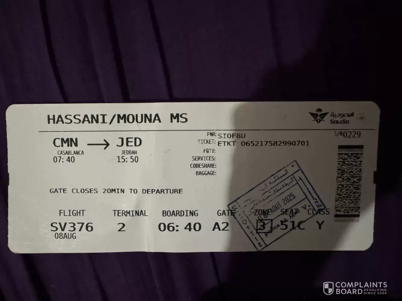 - Flight: SV376 – Casablanca (CMN) to Jeddah (JED) – Date: 08/08/2025