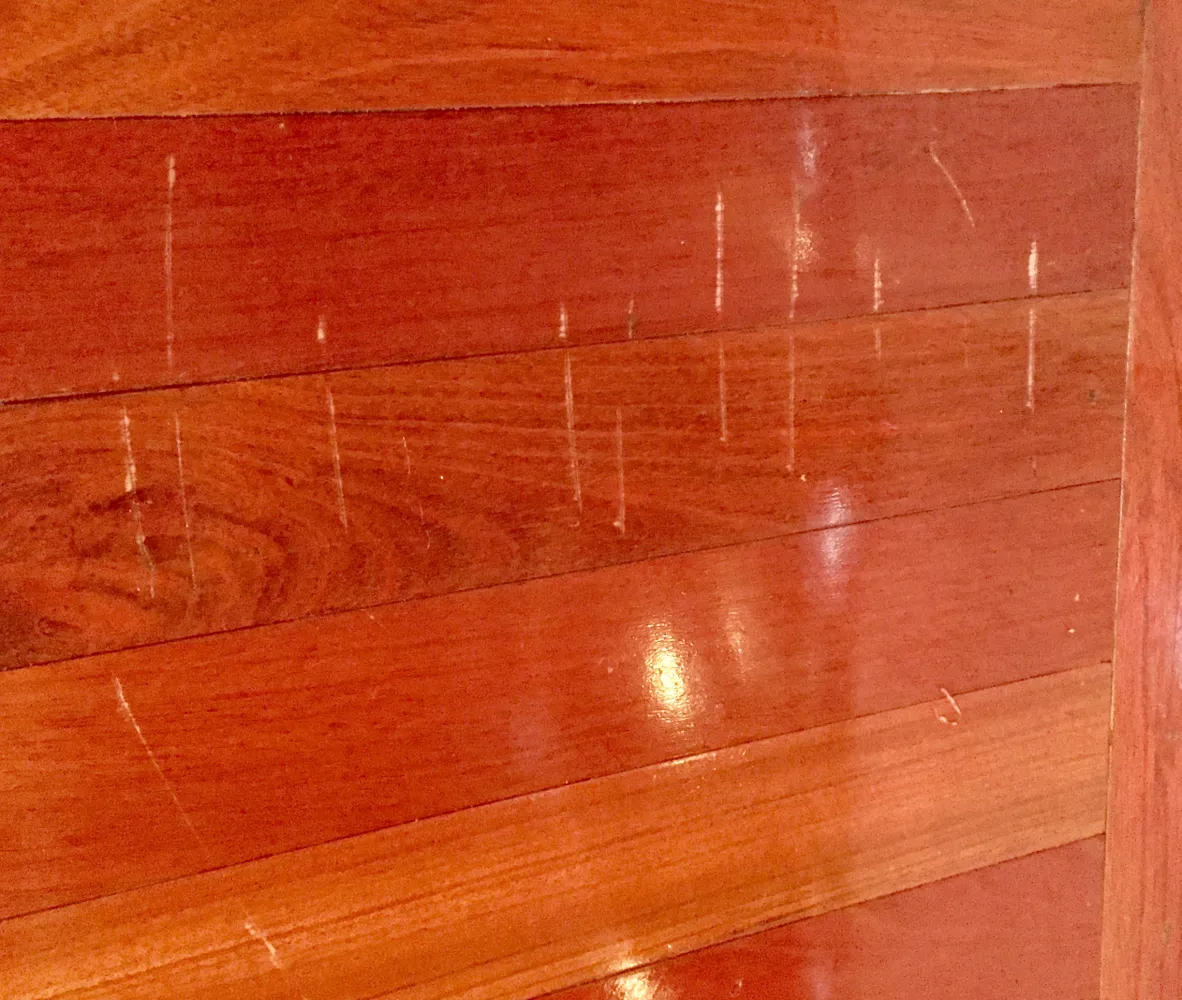 8/16 Sears repairer damaged hardwood floors and want repaired. After repairs made I immediately go upstairs discover huge scratches in hardwood floors located directly in front of washer. Repairer while moving to repair, did not use floor protectors. Service panel in back of machine. Pics clearly show machine was pulled out & rotated on floor