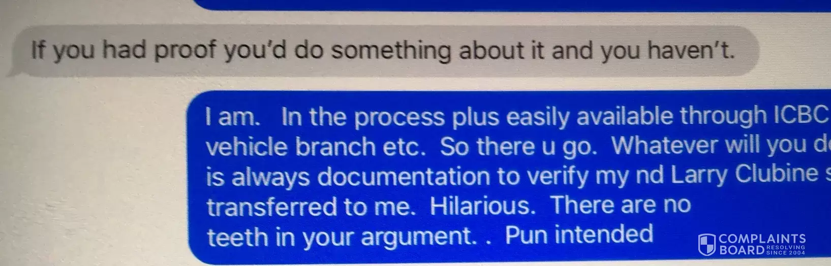 FYI, there are more legal gun owners then RCMP Officers. They all stand together and protest, the RCMP will back down pretty quick. Sometimes you have to stand up to government for what is right BruceFlynn@BruceTarras BruceFlynn CUT AND PASTED VERBATIM – NOT ALTERED please visit https://www.bcfsa.ca/public-protection/report-concern/file-insurance-complaint For information on what to include in your submission, our complaint handling process, or what happens to a complaint, please visit https://www.bcfsa.ca/public-protection/report-concern/file-insurance-complaint Subject: We were able to track down the transfer document. Please find it attached as a PDF. Kind regards, Ryan Ruggles .North Vancouver | British Columbia | V7M 3H9 RE FORGERY OF SIGNATURE GREEN VAN ORIGINALLY PURCHASED FROM LARRY CLUBINE OF CC AUTO MAPLE RIDGE To: FOI Requests Subject: [EXTERNAL] Forgery of my personal signature on Green van registration. NOTE: CONFIRMATION RECEIVED VIA REGULAR HARD COPY - MAIL AS WELL AS BY EMAIL FROM RYAN RUGGLES ICBC COVERING CONFIRMATION FILE REFERENCE NUMBER F285775 From: Bruce's mother: to general.counsel, bcc: xx RE: POLICE FILE [protected] T Ludeman RCMP illegal sale of vehicle -transfer of vehicle Also likely illegal use of my personal identity ie Drivers License IDENTITY THEFT - I do not know how he was able to get this informationand ICBC file Reference F285775 Cc Coordinator@vlaf.ca, admin@honourhouse.ca - they also phoned me and advised me to go to Penticton Veteran Affairs we well