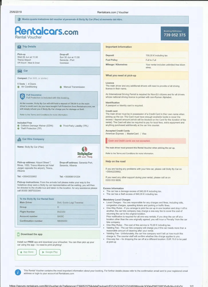 - lack of supportive and proactive approach of Tirana Airport Sicily By Car staff member that would show willingness to help, give options or offer solutions to handle our case
