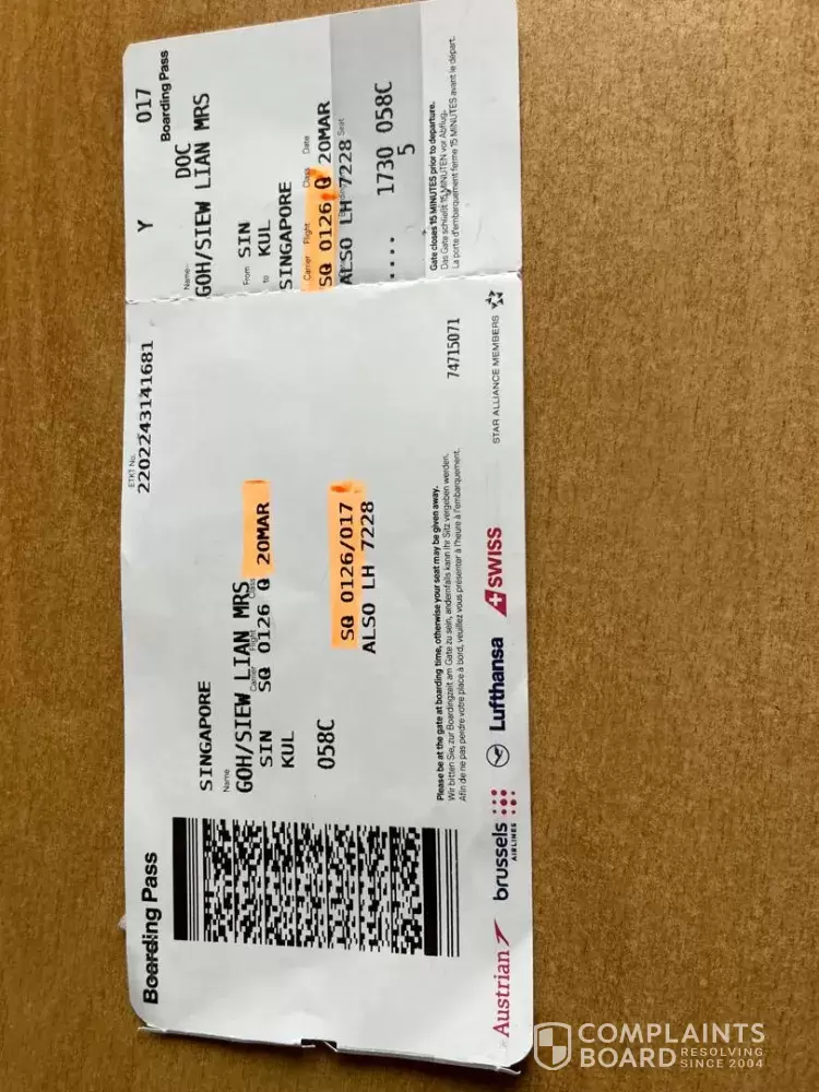 My name is Goh Siew Lian. On 20th March 2026, I flew on SQ 0126 from Singapore to Kuala Lumpur.