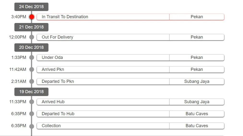 Firstly on 30.5.19 they send the items to wrong branch-Kajang and give reason shipment delay becoz misrouted. The correct branch for my shipment address is Nilai. (Nilai to Nilai took more than 3 days).Then the customer service promise to me that they will make sure that i will receive on 31.5.19 as I told them that I will not available to receive the shipment after 31.5.19. (Going for holidays)