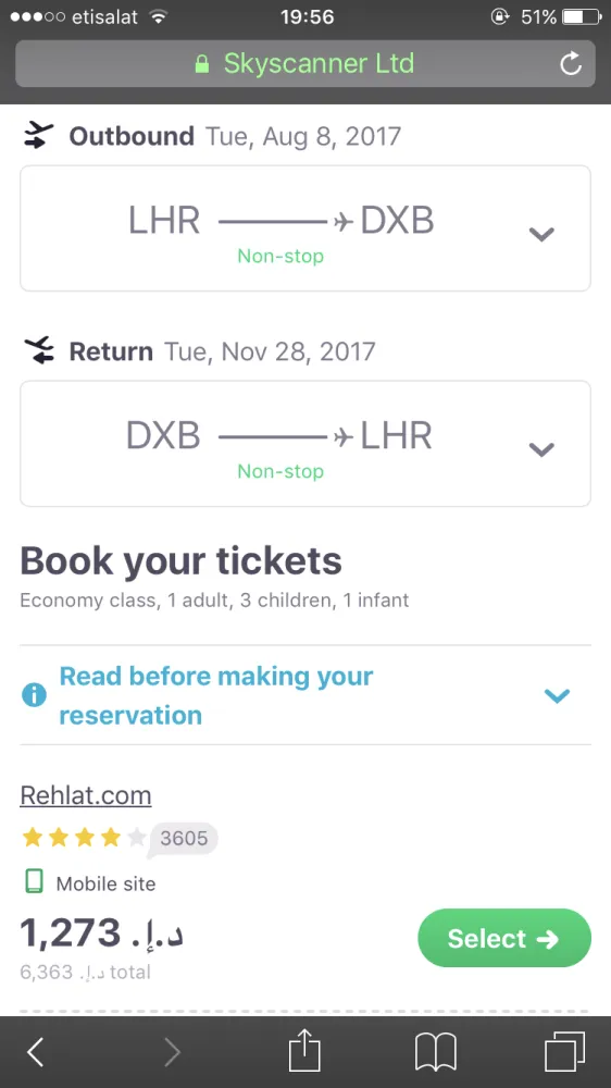 I booked an Qantas flight through your website, being directed to Rehlat. They took my payment of 6, 490AED then immediately told me my booking was unsuccessful. I called them asking what the problem was and they said the tickets were no longer available. I now had the choice to either pay an extra 1, 100AED and fly with British Airways or cancel completely and wait 48hrs+ for my money back. In the meantime though I couldn't book further flights as I needed that money back first. I complained to Rehlat many times but they kept disconnecting my phone call. After 2 hours, I searched the flights on Skyscanner again and 6 new flights with Emirates, operated by Qantas (including my original booking) were now being offered with Rehlat for the same price that I had already paid (6, 490AED). I called Rehlat again and asked them to change me onto one of these flights instead. They told me I couldn't have any of these flights as they cannot change the airline. I asked how they were able to offer me the British Airways flight for 1, 100AED extra and not the Emirates flight for the same price I had already paid (bare in mind that one of these Emirates flights was other exact same flight I had booked with them already). They told me they can move to BA because it is a different price but can't move me to Emirates because there was no increase in the cost. Basically a complete scam to get extra money off me. Anyway, I then had to go and book the flight elsewhere in the end, at a cost now of 7, 555AED. I am absolutely disgusted that Skyscanner is using companies like this. How are they able to take money without confirming availability first and then refuse to put me on a flight of the same cost but offer a much more expensive one. I have not received my refund yet, I have had to borrow the 7, 555AED to book my new flight and have incurred extra costs of 1, 065AED, yet these flights are still on Skyscanner for the original price I paid. What will you do about this? I originally booked my flight with Rehlat at 14:05 today. I have attached a picture taken at 19:56 today showing the ticket at the origins price of 6, 363AED (they add on 127AED to use a credit card, also disgusting). Regards Lisa
