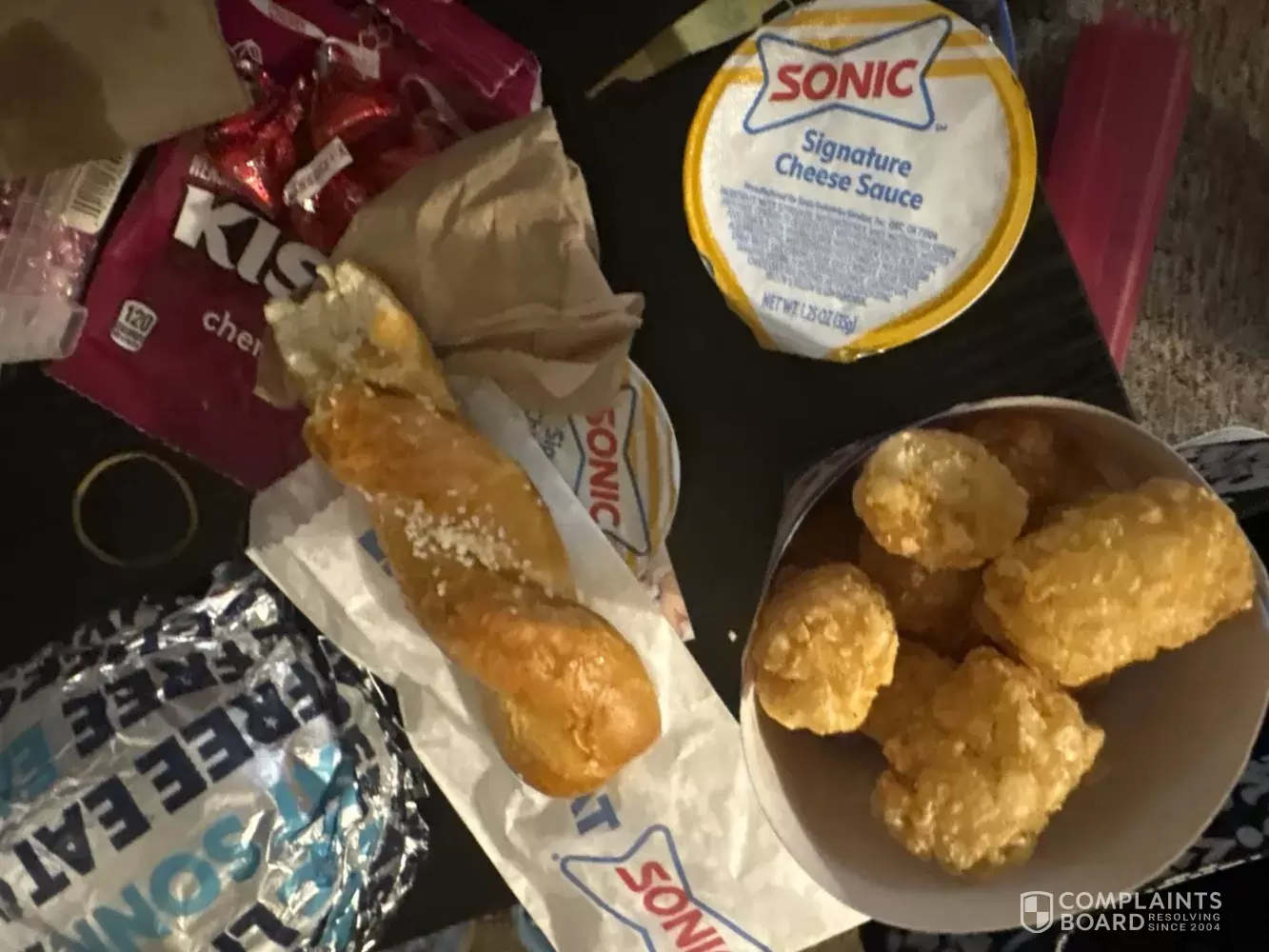 I could barely hear him and he said one drink with the combo. OK I need two drinks total on the meal. He comes up with three drinks and he did not say no three drinks but when he read the order back to me, he did not or he don’t know how to read I don’t know, but he did not read three drinks back because I didn’t need three I only needed two. I got three pretzel with cheese and a sonic combo number three OK the pretzel one of them I asked for extra cheese. It was not clearly marked, and you couldn’t tell which one had extra cheese to me. You couldn’t tell nothing nothing it’s dark at night. You can’t see they didn’t market how am I supposed to know which ones which we couldn’t figure I Mom and my great nephew had never been there and I was bragging about it because we were in Sub and Walmart In. They wanted to press us and they got awesome ones. They were cold cold we were in the drive-through for hold on let me double check the receipt and when we pulled up hold on