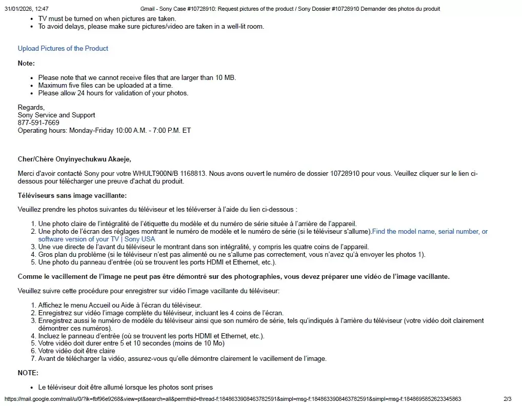 I suspect Sony is overwhelmed and doesn’t know what to do. So they ignore you. Miserable experience.