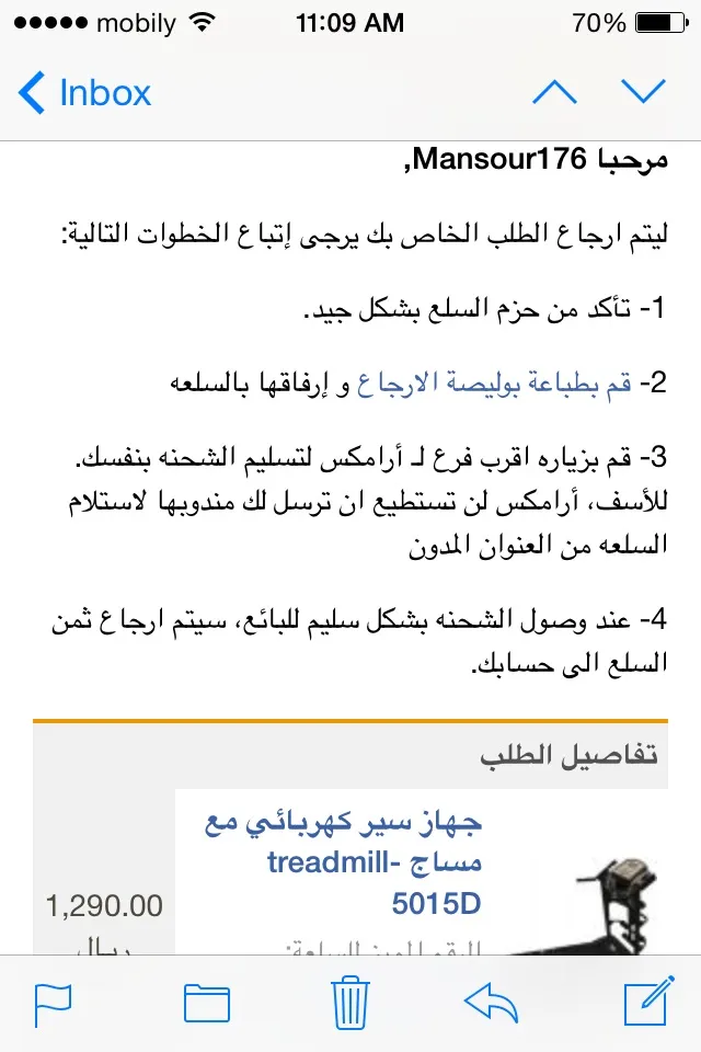 I have a good experience with Souq.com, and I feel committed to inform other consumers with positive experience as we did with negatives. I bought a treadmill from this website, it stopped working 4 months later.. I was not expecting much from an online shopping website in Saudi Arabia but I gave it a try by contacting them.. They first offer to pay for maintanance but I informed that I have no workshop around me to fix it they issue a full refund!