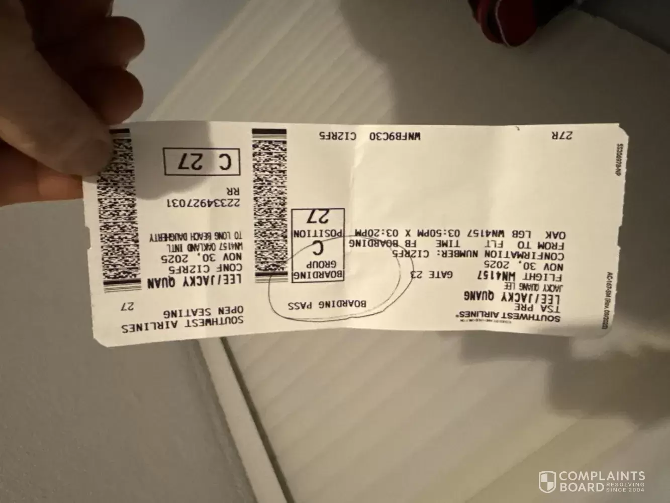 Incorrect Boarding Pass Issued at Check-In – Flight WN4157 on 11/30/2025
