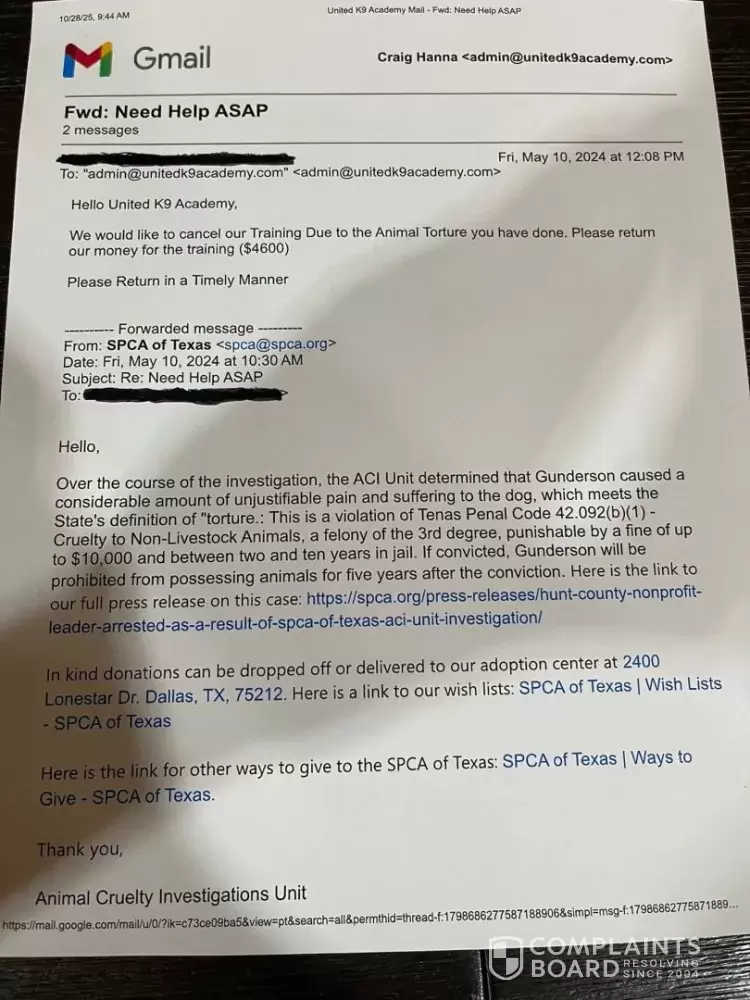 April of 2023 a false complaint was made to SPCA. Craig is a 100% disabled veteran. Craig runs a training and boarding facility. The case was found to be false. The case was closed. To my neighbors knowledge that was the end of it. November 2023 over 6 months later. SPCA does a press release. They raided a facility and arrested the owner for felony dog abuse. The press release on tv asking for donations released my neighbors name Craig Hanna. Craig quickly called the SPCA about this mistake. The following week they arrest Craig Hanna and reopen the case from April and charged him with animal cruelty. They arrested him and left all his animals which he is caretaker for at the house. They arrested him cause they raised over 30k in donation money through the Pr press release. They either had to arrest him or tell the public about the name mix up and return donation money. His charges have been dismissed. The issue is the spca animal cruelty investigators. Courtney Burns Randi Dykes and Jason Taylor. They aren’t doing investigations, Wrongfully arresting people and nobody to complain to about this behavior. I believe their is favoritism within the spca depts and incentives and bonuses for publicizing of donations or stealing peoples animals. Courtney burns was found to have committed perjury in craig case. She also was found to have hidden information about the case bring previously closed. I also uncovered 2 other cases that makes 3 United States veterans who got animal cruelty charges but were found not guilty in the eyes of justice and dismissed. It also lead me to another case where a lady who was friends with Jason Taylor and supposed to be pet sitting turned her over when she left town to Jason Taylor. She was a rescue and Jason Taylor claimed to have seized so many animals off the property but half of those animals other Foster’s brought while spca was their and they said they came from her place. Please be cautious when dealing with these individuals.