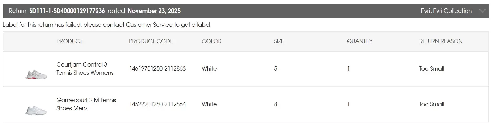 I placed an order with the number SD40000129177236 and would like to return some items. I selected the option to have the return collected from my home via the portal and paid £4.99 for this service. Unfortunately, no one came to collect the items on the scheduled date, and I also did not receive the return label by email.