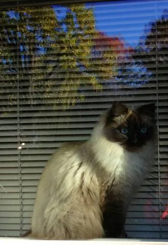 At a year, her coat is short and sleek, more like a siamese than a ragdoll...So I wrote to Cindy, sent her a photo, and asked her if she had other photos of my kitens siblings, or more photos of her parents, or just any info on as to why my cat has such short hair at this stage.