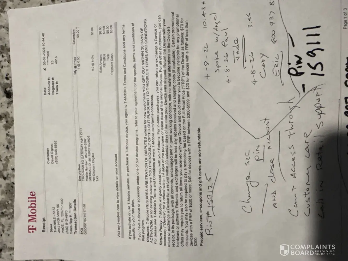 I had TMOBILE internet and returned the equipment on March 7 2026, and still being invoiced for service. After calling no less than 7 times, and directed that I would have to go to the local store. I went to the local store and was told I would have to call the service number. The next day I called the help line and was told I would have to go to the store. I can't find a person to listen and help with the charges from after march 7th. I have had enough of this run around for charges that are not legitimate.