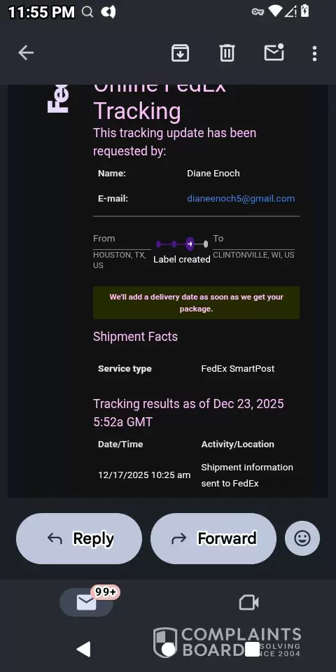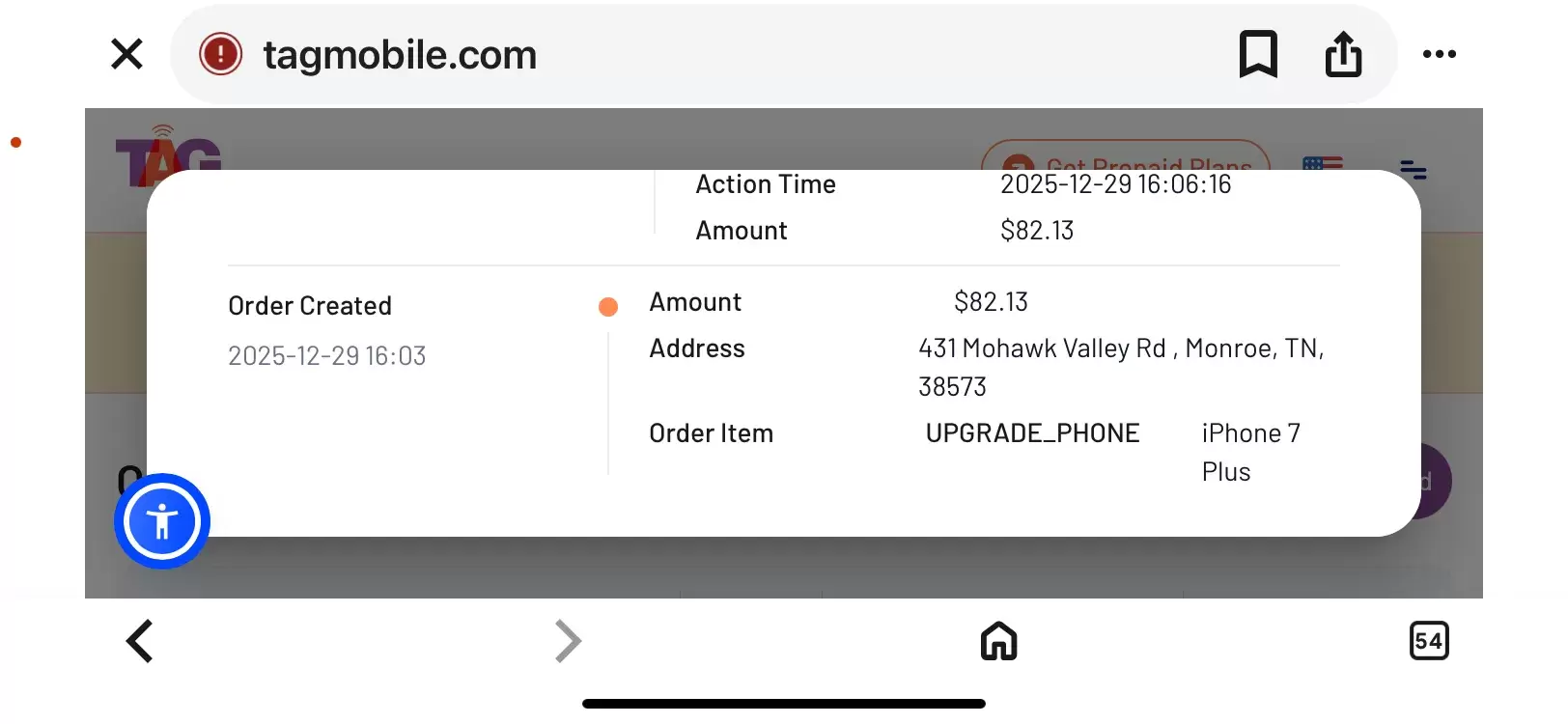 I applied for life line through tag mobile my phone came really fast but it won't charge so I had to order a replacement phone I paid 83.33 tag mobile said my replacement was shipped on December 17 2025 FedEx says they haven't received it. I can't get ahold of anyone at tag mobile so here I am without a phone. Today is 12-23-2025 and now on tags website it says it was shipped today but FedEx still hasn't received it l.
