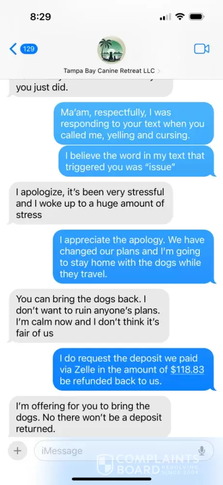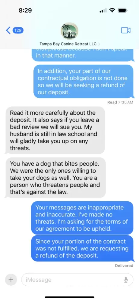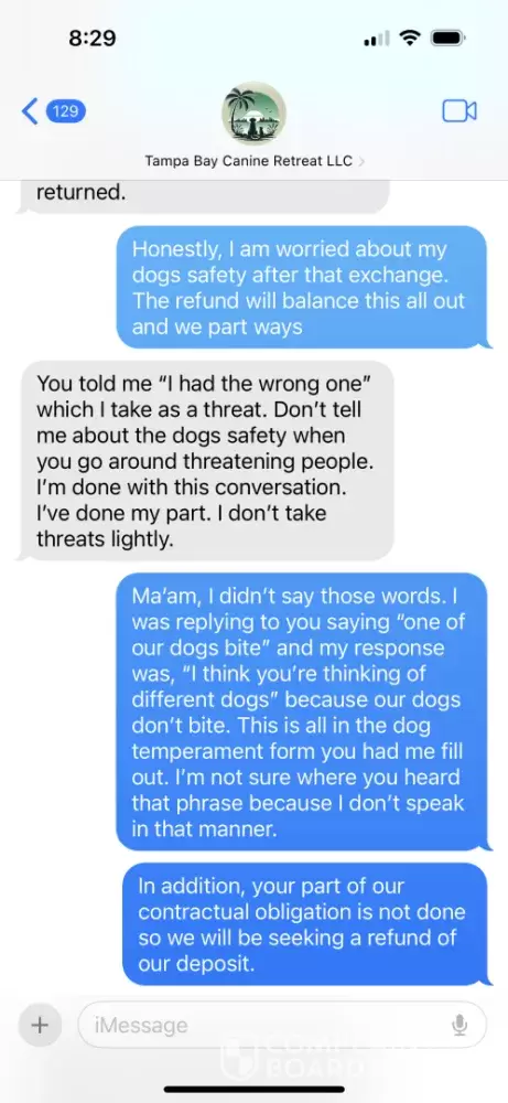 Tampa Bay Canine Retreat has left an official reply on this complaint.