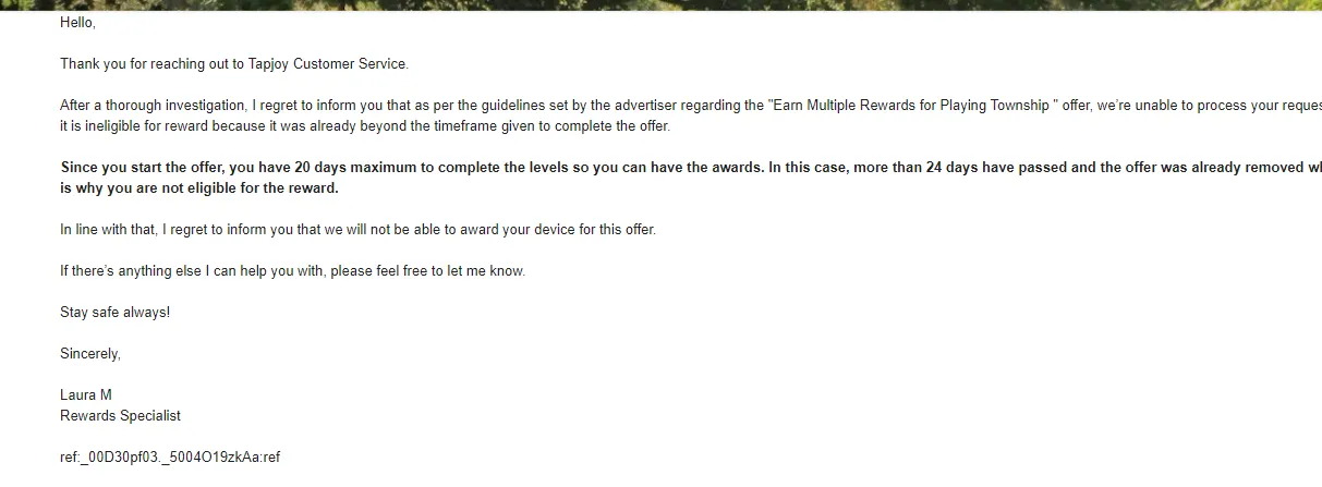 Here's the response I got after I sent them the request for my rewards with the same screenshots I attached here: