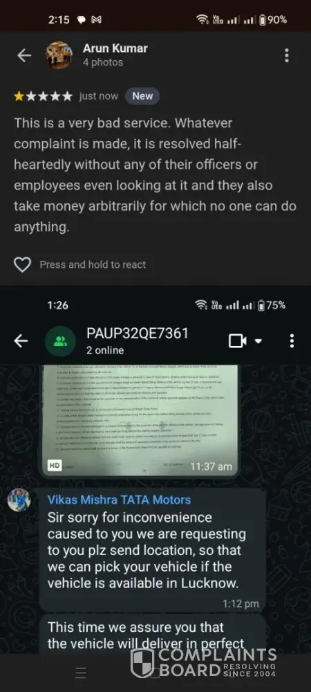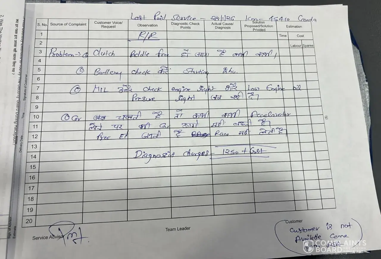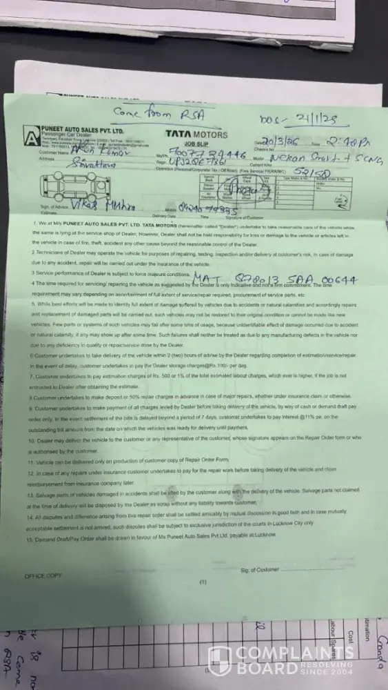 I submitted my vehicle — a Tata Nexon iCNG — to your facility on March 20, 2026. After conducting a diagnosis, you noted complaints regarding the battery, clutch, brakes, and starting mechanism, and charged me ₹1,250 plus GST for the service. However, when the vehicle was delivered to me on March 25, 2026, you had addressed only the battery issue; not a single one of the other complaints had been resolved, and the car was returned in the exact same condition. When I reported these issues again on March 30, 2026, you took the vehicle back into your custody and promised to repair it within two days. Two days later, when I arrived to collect the car, I was informed that it would require another three days to fix. At that point, I requested that you simply return my vehicle to me in its current condition; however, you asked for "one more chance," assuring me that this time there would be absolutely no grounds for complaint. Trusting your word, I left the vehicle at your facility. Yet, as of today — April 6, 2026 — despite sending multiple messages, I have received absolutely no updates regarding the status of the repairs. If you are unable to repair the vehicle, please return it to me immediately, accompanied by a written statement confirming that the necessary repairs cannot be performed at your facility. I did not purchase this car merely to have it sit idle in an agency garage; I bought it to drive. I had given my Tata Nexon ICNG vehicle number U P 32 Q E 7361 which had a problem in battery clutch brake starting. I had given it to you for repair on 26th March 26, 2026. You gave me the car on 30th March 26, saying that everything was fine, but after driving it, it was found that nothing was done to it, only the battery was repaired and the car was returned. When I told you again, you said send the car back, this time we will get it repaired completely and give it back in 2 days, but after 2 days you told me that it will take 3-4 more days, so I said give me my car back, I will get it repaired somewhere else, but you people said let it be for once, this time it will be repaired completely. The car was returned on 08th March 26, but after driving the car, it was found that nothing was done to the brakes, earlier also there was a noise on applying brakes, the same sound is still there, when I told you, you said bring the car back, we will check it again, I come 135 km from Gonda. I wonder how many times I will come to your garage. There is no one responsible for whether the complaint was resolved or not. There must be a supervisor. This shows that either the customer is deliberately harassed or the reputation of Tata Motors is being tarnished. I will never get the servicing done at your place. I will get it done outside but will never get it done at such a garage. Respected Sir/Madam, I had given my Tata Nexon ICNG vehicle number U P 32 Q E 7361 which had a problem in battery clutch brake starting. I had given it to you for repair on 26th March 26, 2026. You gave me the car on 30th March 26, saying that everything was fine, but after driving it, it was found that nothing was done to it, only the battery was repaired and the car was returned. When I told you again, you said send the car back, this time we will get it repaired completely and give it back in 2 days, but after 2 days you told me that it will take 3-4 more days, so I said give me my car back, I will get it repaired somewhere else, but you people said let it be for once, this time it will be repaired completely. The car was returned on 08th March 26, but after driving the car, it was found that nothing was done to the brakes, earlier also there was a noise on applying brakes, the same sound is still there, when I told you, you said bring the car back, we will check it again, I come 135 km from Gonda. I wonder how many times I will come to your garage. There is no one responsible for whether the complaint was resolved or not. There must be a supervisor. This shows that either the customer is deliberately harassed or the reputation of Tata Motors is being tarnished. I will never get the servicing done at your place. I will get it done outside but will never get it done at such a garage. I have been told through a message by you that this time you should give me the car again, this time I will repair it completely and give it back to you, but when the car was at your place for 15 days then why did you not repair it, if you bring it to your place again then I will tell you anything and detain the car for 5 days, hence now I will never get it serviced at your place, in the hand writing receipt you have given it was written to put some brake oil, but now I have a doubt whether it has been put or not, now I do not trust it, and the customer review feedback which is to be filled after servicing, you should not fill it yourself, when I come I will fill that format, it is I who have to write the customer review However, the agency has never sought feedback, nor have I ever been provided with receipts for the parts installed. I have consistently had my vehicle serviced at this facility, yet this persistent issue remains: if one pays extra, the servicing is expedited; otherwise, it takes anywhere from 7 to 15 days. I reached out to the following individuals of No 403 and 407, Faizabad Road Tiwariganj Lucknow – 226028 Near BBD University+[protected] at the agency, but no resolution was achieved: