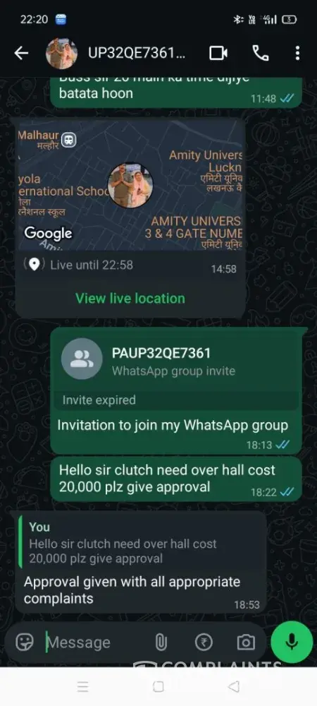 Additionally, I lodged a complaint via the number [protected]. If no action is taken regarding this complaint henceforth, I will be forced to file a court case..
