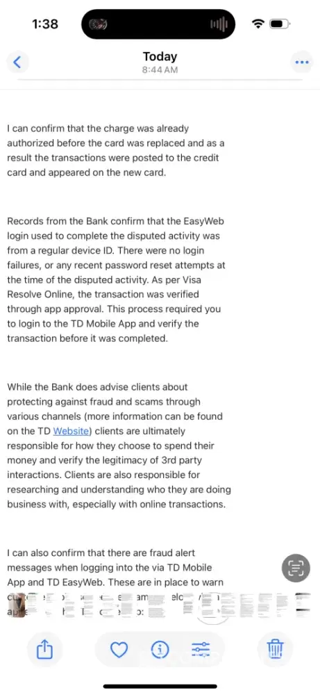 I feel that TD has been completely negligent in properly informing customers, and has not fulfilled their legal duty regarding transparency of investigations: