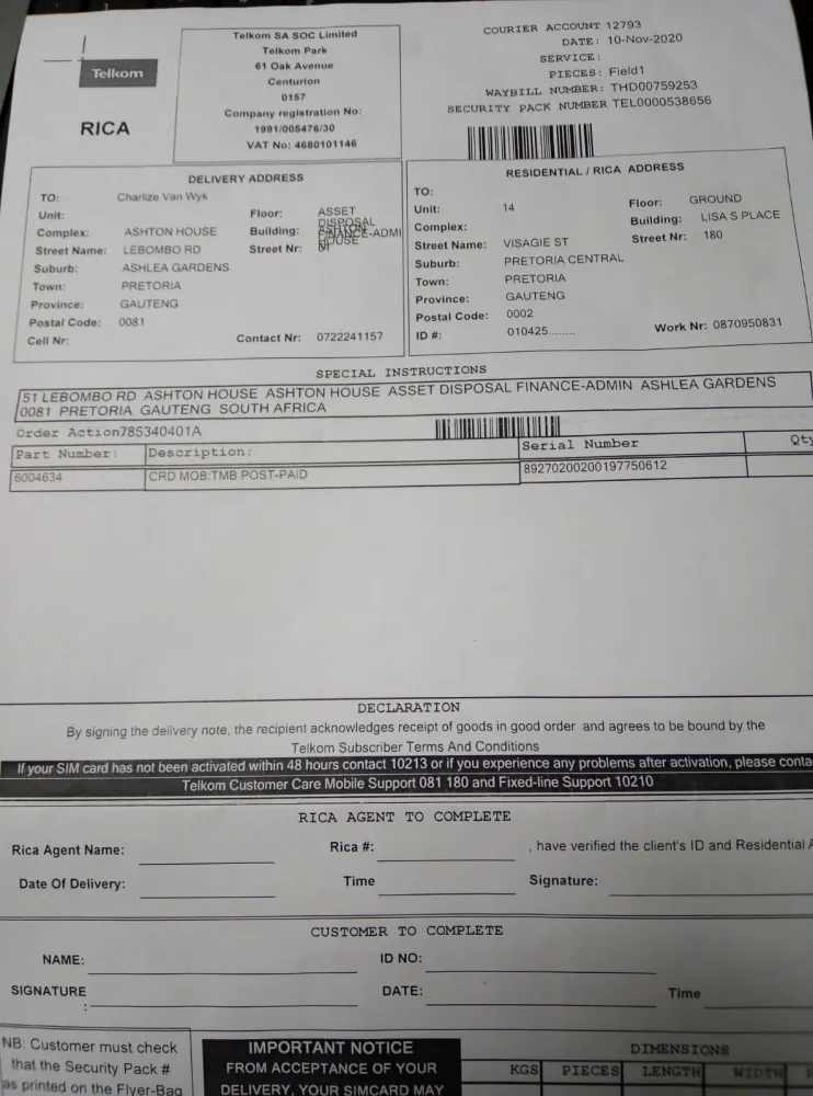 I had not received any communications from Telkom since. I have visited the branch again on the 07/12/2020 and was advised that the documents have been resent to the wrong department again. The consultant then showed me on his screen that he has now sent it to the correct department and should get feedback within 72 hours.