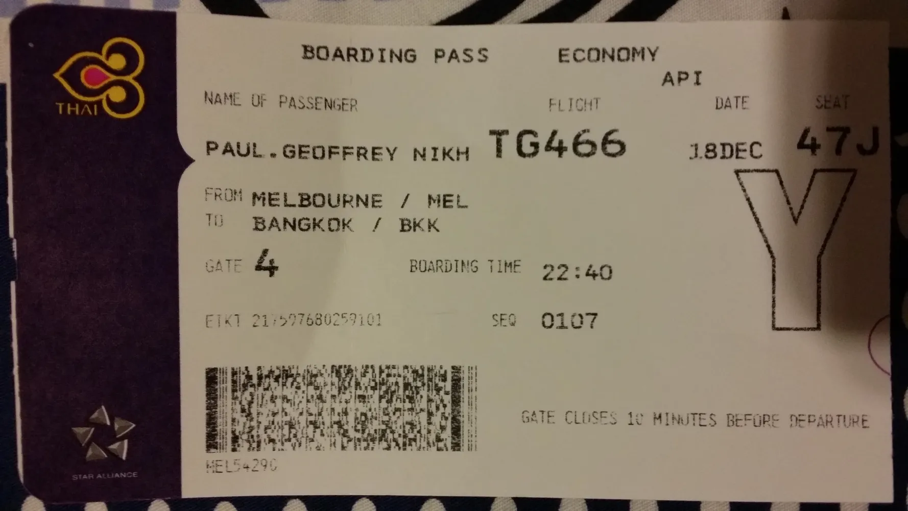 On Monday, the 8th of February 2016, me and my wife were scheduled to leave New Delhi on a flight TG324 at 11:10 bound for Bangkok Suvarnabhumi Airport on the way to Sydney.